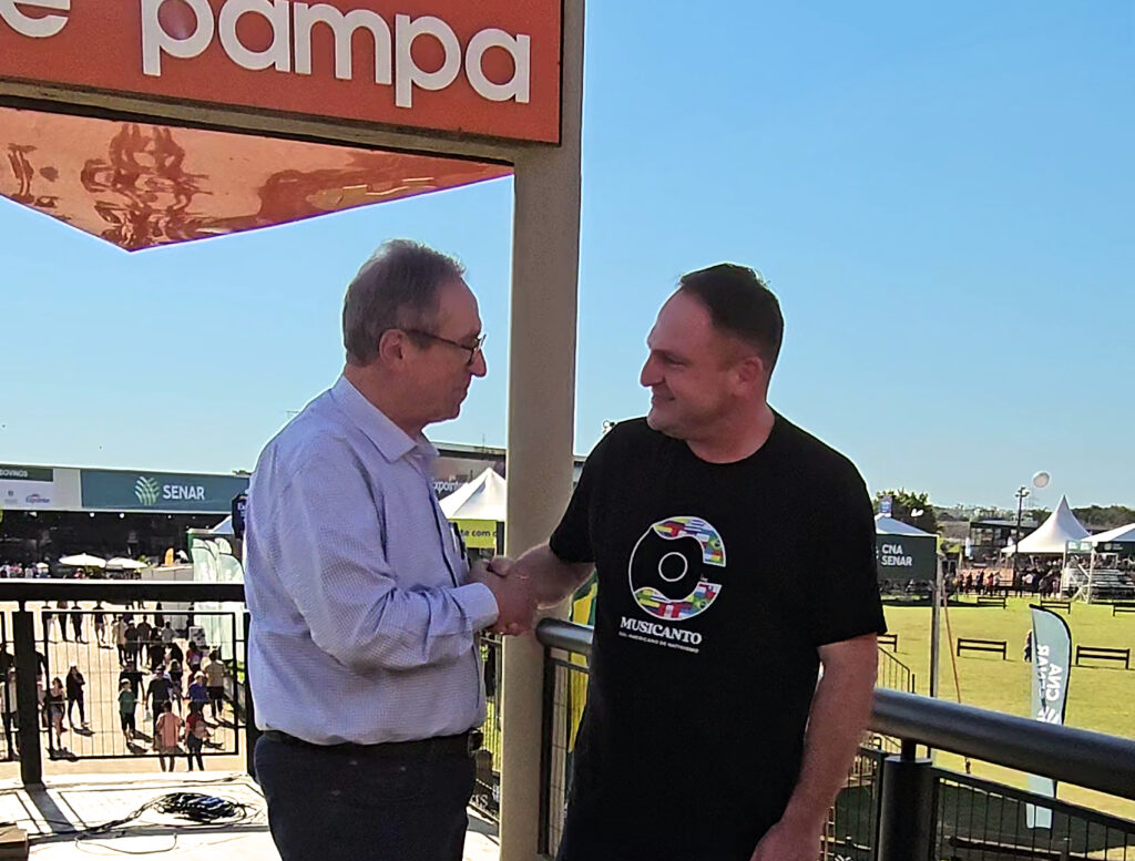 Durante a Expointer 2025, a comitiva do Musicanto teve a honra de encontrar o jornalista e vice-presidente da Rede Pampa de Comunicação, Paulo Sérgio Pinto, conhecido por sua trajetória no jornalismo gaúcho e por comandar o tradicional programa Pampa Debates.